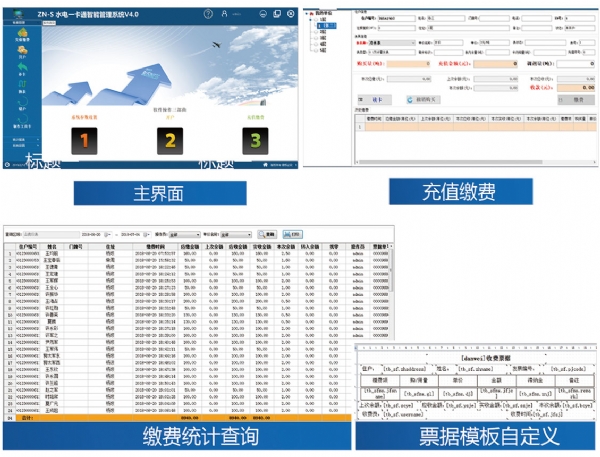 收费管理软件主要实现开户、充值缴费、补卡、换表、销户、缴费记录查询、报表统计、票 据自定义等功能;